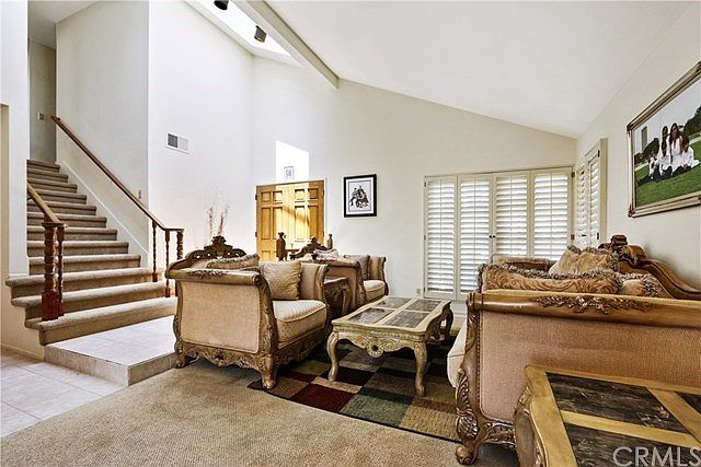 Luxury living in private gated Windstream, an elegant lifestyle in a family association community steps to Irvine's top schools. Kids can walk to Santiago Hills Elem. Northwood High!! Enjoy executive living in a safe gated community. 4 bedroom split level home traditional architecture w/ classic French windows and high vaulted ceilings. Skylights illuminate surroundings. Spacious family room with a massive wood burning fireplace/ log storage and upgraded wet bar w/ wine cooler cabinet. Gourmet kitchen with gas range at center island provides a spacious kitchen nook area with a wall of custom built-in shelves. Recessed lighting, solid hardwood quality adjustable cabinets, granite counter tops, and stone back splash make for a warm entertainer's kitchen. A central wide staircase to a master suite boasting two story ceiling, wood~burning fireplace in the large master retreat, open and bright master vanity is waiting. Master vanity pampers with wide double sink counter, separate roman tub and shower and private water closet. A spacious walk in closet in the Master suite makes for good storage area. Laundry chute in hallway is convenient. Hall bathroom also provides a double sink vanity and tub/shower. New paint,carpet, tile floors. Shows very well!