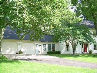 Gorgeous setting with mature trees. Large living room plus family room w/gas fireplace. Kitchen w/appliances and curly maple countertop opens to dining room. 3 large bedrooms plus a bonus room over garage. Partially finished full basement w/stairs to outdoors. First floor utility room.