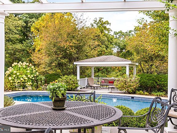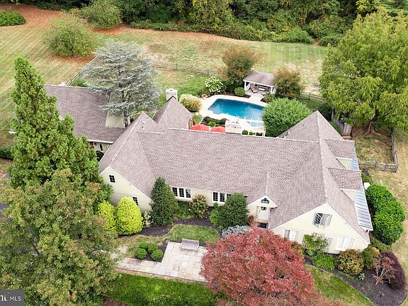 Red Fox Farms- Nestled on 2+ acres in this highly sought-after Solebury neighborhood, this beautifully maintained custom home offers exceptional craftmanship, modern convenience, and an adaptable floor plan to suit a variety of lifestyles. Designed for flexibility, it features a first-floor main bedroom suite, 2 home offices, and private guest or au pair quarters, making it an ideal transitional or multi-generational home. Unassuming from the exterior, this 4 Bedroom 4.1 bath residence provides primarily one-level living, with the exception of an en-suite 2nd floor bedroom suite. The home’s low-maintenance exterior showcases primarily brick and Hardie board siding, a dimensional shingle roof, and an entertainer’s dream with a salt-water pool, spa, expansive deck with pergola, and covered cabana overlooking the pool. Upon entry, the center foyer leads to multiple inviting spaces. The formal living with fireplace, and dining room, each boast triple casement windows, while the custom-designed kitchen and gathering room serve as the core of the home. The handsome renovated kitchen is a culinary dream, featuring William Draper hand-crafted cabinetry, soapstone countertops, specialty glass tile backsplash, and top tier appliances, including a 5-burner Wolf range, Armoire style Subzero refrigerator, freezer drawers, pantry, Miele dishwasher, microwave, and a wine cooler. A marble pastry counter, stylish pendant lighting, and cork flooring complete the sophisticated space, which seamlessly flows into the adjacent gathering room with gas fireplace, and a wall of glass sliding doors to the outdoor pool and entertaining areas. There is also a step-down family room with vaulted ceiling and wood fireplace, an inviting retreat with built-in cabinetry, a wet bar, and direct access to the pool area It is a great entertaining space and also serves as a gathering space near the in-law or spare bedroom area. A pair of offices, one presently a gym, are accessed from the front foyer, with a powder room and full bath just steps away- great for spillover company or additional bedroom space. The expansive first floor primary bedroom suite is a true sanctuary, highlighted by a cathedral ceiling, en-suite bath with jetted tub and shower, and a spacious walk-in closet. French doors adorned with full length plantation shutters lead to a private deck overlooking the pool area. Nearby, a turned staircase leads to a second-floor en-suite bedroom, with an adjoining walk-in attic providing vast amounts of storage, or a space for potential expansion. There is an oversized attached 3-car garage with high ceilings, extra tall garage doors and an open span, ideal for car enthusiasts or installation of a car lift, if desired. A large walk-up storage area above the garage is floored, yet another opportunity for a home gym, office, or creative space. Outdoors, the secluded rear yard is a haven of privacy, with lush landscaping and a protected treed backdrop. The saltwater pool and spa, with limestone coping, and expansive easy care composite deck adjoining the house create a luxurious escape, complete with a shaded pergola and covered cabana. Additional highlights include zoned propane heating, central air, a whole-house generator, security system, and the benefits of the top-rated NH/Solebury School District. With its unparalleled flexibility and exceptional amenities, this one-of-a-kind residence is ready to meet your needs, whatever they may be!