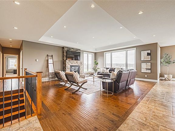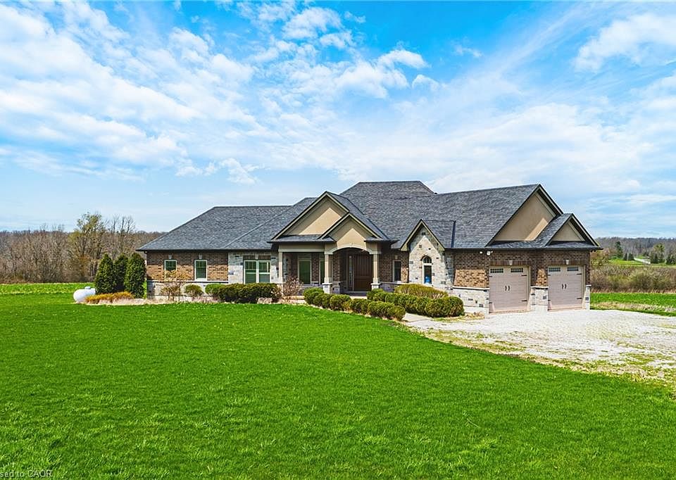 Welcome to country living at its finest! Nestled on 16 private acres, this stunning custom bungalow offers over 4,000 sq. ft. of thoughtfully designed living space. Featuring 5 spacious bedrooms and 4 beautifully appointed bathrooms, this home is perfect for families and entertainers alike. Enjoy a seamless blend of luxury and comfort with a gourmet kitchen, a fully equipped wet bar, and expansive living areas. Unwind in the hot tub, stay active in the dedicated exercise room, and host effortlessly in this inviting rural retreat. A rare opportunity to own a true countryside oasis with room to roam and space to grow. Property also features separate barn/shop and garage for your business or a potential income opportunity