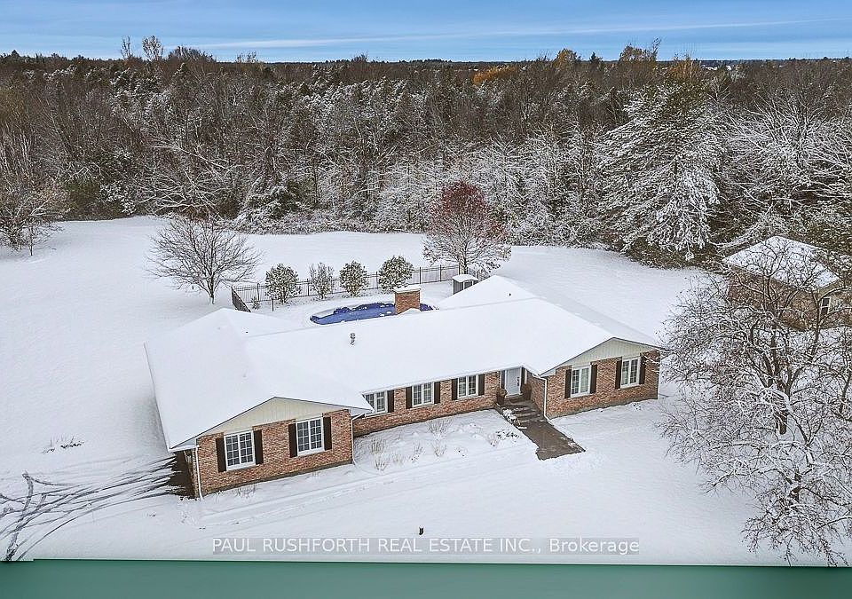 DREAM PROPERTY. SPECTACULAR. High quality STUNNING 2700sqft BUNGALOW on a MAJESTIC 1.7 ACRE treed estate lot in desirable RICHMOND boasting an additional DETACHED TRIPLE GARAGE / WORKSHOP!! PRIVACY & TRANQUILITY in a natural setting mere minutes to amenities. EXTENSIVELY RENOVATED and bursting w/ upgrades & designer finishes. IMPRESSIVE CRAFTSMANSHIP, superb style, open concept layout ideal for everyday living/hosting. FOUR BEDROOMS on MAIN FLOOR + potential for 2 more on lower. This beauty has it all: paved driveway, full brick exterior, in-ground pool, hardwood floors, custom millwork, natural slate flooring, GOURMET CHEF'S KITCHEN with stylish banquet eating area, formal living/dining rooms, mudroom, main floor laundry = ONE LEVEL LIVING! SPRAWLING 4 SEASON SUNROOM (currently used as dining). LAVISH PRINCIPAL RETREAT w. ensuite ABSOLUTELY FABULOUS. OVERSIZED WINDOWS = SUNNY/BRIGHT. Finished lower featuring a lounge, HOME THEATRE, gym (+ space for 5th bedrm/office), 2pc bathroom (w.space for expanding). RESORT STYLE exterior living at its finest: IN-GROUND POOL, fully landscaped, fenced, SPRAWLING DECK & more! 2 CAR ATTACHED GARAGE. BELL/ROGERS HIGHSPEED Available. JUST PERFECT. 200AMP Electrical, Roof 2021, Furnace 2021, Hot water tank 2023. A VERY RARE OPPORTUNITY.