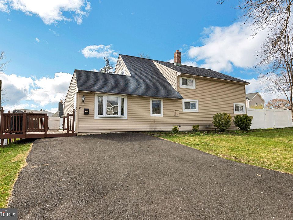 Welcome to 15 Ridge Lane in Levittown, this expanded 5-bedroom, 2-full bath single-family home is updated and ready for it's new owners. Situated on a corner lot this home has an open layout kitchen featuring granite countertops and stainless steel appliances. The rest of the first floor has the large living room, a full bath, a long with 3 bedrooms including the primary bedroom addition. Upstairs you'll find the second full bath a long with 2 additional bedrooms. Outside you'll find the roofed patio and side deck overlooking the privacy fenced backyard. 15 Ridge also features a brand new HVAC system installed last year, ensuring year-round comfort. The addition of solar panels makes this fully electric home exceptionally eco-friendly, with massively reduced PECO bills ($12 in February). With its convenient location near I-95, Rte 1 and the turnpike this home is convenient for any commute. Schedule your private showing today.