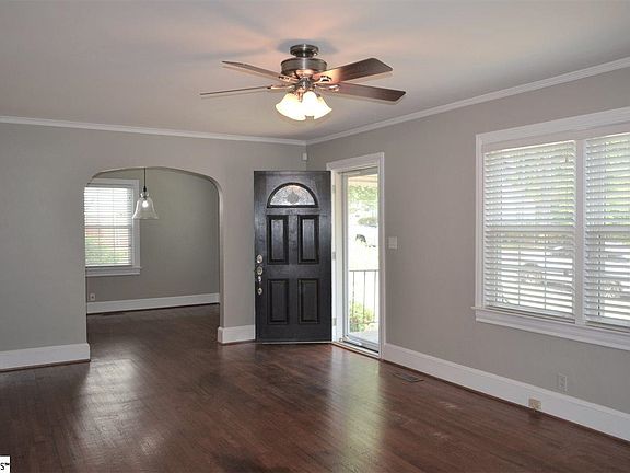 LOCATION! LOCATION! LOCATION! Looking for a nicely maintained home with upgraded Kitchen, beautiful hardwoods, low maintenance exterior, fenced yard and detached outbuilding? You Found It! Just minutes from downtown Greenville, Cherrydale, Travelers Rest, Swamp Rabbit Trail and Interstate I-385, this house is conveniently located. Some of the BEAUTIFUL RENOVATIONS AND SPECIAL FEATURES include an architectural shingle roof, gutted Kitchen which includes new cabinetry, quartz counters, stainless appliances, fixtures, arched doorway, outbuilding, thermal windows, low maintenance vinyl exterior, updated bath, laundry room, etc. Well-maintained hardwood floors can be found throughout the main living areas and a gas-log masonry fireplace is a lovely focal point of the spacious Great Room! The oversized updated Kitchen will wow the most discriminative chef with lots of newer bright white storage cabinetry (including a pantry with pull out shelving) accented by upgraded stainless appliances, quartz counters and subway tile backsplash. The eat-in Kitchen offers both bar counter seating and a large dining area! A door off the Kitchen leads to the back deck (12x10) overlooking a private fenced backyard. The outbuilding (14x07) provides extra storage, a workshop option or extra space for outdoor entertaining. Just off the Great Room is a laundry room with plenty of room for bulk storage, a clothes hanging rack, a folding table and/or more! This charming home offers two nicely sized bedrooms with good closet storage split by a full bath updated with a nice pedestal sink, toilet, tub/shower and large linen closet! Additional features to appreciate about this home include smooth ceilings, 2" blinds, upgraded lighting fixtures, a pull down for attic storage in the hallway and NO HOA! A great buy on a beauty you wont want to miss in a growing location second to none! SF is approx. and should be verified if important. Chimney conveys as-is with no known defects.