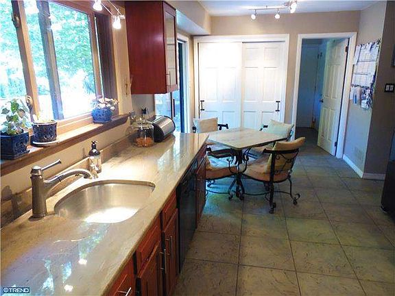Located close to the new turnpike ramp and in the Charlestown township countryside. This home is situated on a private cul-de sac and far from any turnpike noise. It is one of the most private serene settings that are available now. It is a beautiful contemporary home situated on 2.2 wooded acres but close to the Middle School and High School. Avoid the rush traveling south to get to the school. If it is wildlife and privacy you are looking for then this home is a must see. The back of the property even backs up to the famed Horseshoe Trail. Camp and hike on your own property. Looking at the map online this home is NOT close to the turnpike noise. It is very peaceful. Front entry leads to a two-story soaring foyer with tile flooring and modern chandelier. The open floor plan living room/dining room has a wood-beamed vaulted ceiling, hardwood floors, fireplace with solid cherry wood mantel and a Vermont castings wood-burning stove to keep you cozy and warm in the winter. An updated eat-in kitchen with "Wild Seas" granite counter tops, counter depth refrigerator with ice maker and glass cabinets lead out to a large, elevated deck with built-in bench seating overlooking the tranquil view of tall mature trees. The first floor bedroom can be used as an office or library/den and connects to a half bath. Hand-hewn black walnut stair treads lead to the second floor with three additional bedrooms and two full baths. The master bedroom suite includes a sitting area, vaulted ~ ceiling, two closets (one a walk-in)and an upgraded en suite bathroom with a large glass walk-in shower. Two additional bedrooms and common bath with marble floors and large granite sink vanity complete the upstairs. The finished walk-out basement with wood-burning fireplace and energy-star windows offers 800 square feet of additional living space and can be used as a family room or fifth bedroom. Conveniently close to Great Valley schools, executive parks, Vanguard and Wegmans. Refrigerator, washer/dryer and snow blower are included in the sale. The bookcases and generator are negotiable.