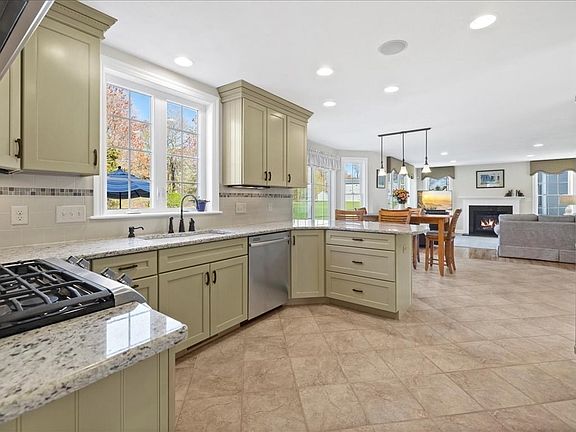 Located in one of Ashland’s most desirable neighborhoods, this meticulously maintained home is filled with natural light and thoughtful updates. Relax on the charming farmer’s porch or enjoy the eat-in kitchen with granite counters, updated gray cabinets, and radiant heated floors. Sliders lead to a spacious hardscaped patio with gas firepit—perfect for entertaining. The open-concept living area offers a gas fireplace and large windows to view back yard. A gorgeous dining room, sun-filled sitting room, and half bath complete first floor. Upstairs, the generous primary suite includes two closets, a bonus room that could be office or private living room, and en-suite with double vanities, soaking tub, and stand-up shower. Three additional bedrooms, full bath, and laundry round out the second floor. The finished basement includes a family room and is rough-plumbed for a bathroom. Impeccable lot abuts conservation land for added privacy.
