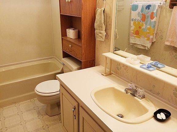 This great family home has a lot to offer! The kitchen is spacious with plenty of cabinetry, counter space and storage. All major appliances are included. The adjacent dining room has beautiful arched floor to ceiling windows and is open to the living room with more of the same large windows! There are 3 good sized bedrooms. The master has a private bath.Large laundry room has lots of storage and also includes washer and dryer. The fenced yard is lined with rose bushes. Two large sheds for extra storage. Covered patio, carport and more.Lot Rent: 654/mo | Includes: Sewer