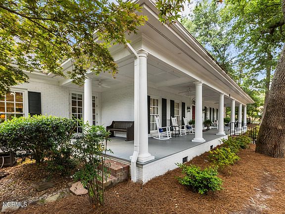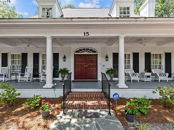 This quintessential Grand Southern residence epitomizes the relaxed and upscale lifestyle that is Old Town Pinehurst. Walk up to the gracious, columned front porch which spans the front of the house and enter through double doors. You will be greeted with a soaring staircase and two-story Great Room with fireplace, cherry hardwood flooring, and wet bar. An adjacent atrium/Carolina room featuring federal style, arched windows is currently used as a light filled art studio. The formal dining room, grand staircase and upstairs balcony add to the ambiance. A large island, newer refrigerator and dishwasher, quartz countertops, farmers sink and white tile backsplash grace the kitchen with an adjacent pantry/laundry room and breakfast area. Converse and mingle with guests in the comfortable seating area with custom built-in shelving that is open the kitchen while you prepare a meal. The spacious main floor Owners Suite includes a private screened-in veranda, 2 walk-in closets, double sinks, tub and tiled shower. Upstairs are two additional bedrooms and baths, plenty of closet space and storage areas and a charming reading library overlooking the Great Room. Above the garage you'll find a separate guest quarters with full bath perfect for visiting family or a quiet retreat that is currently used as an office and studio. The grounds are landscaped with perennials and native plants, with the front yard boasting an azalea garden of over 30 plantings that produce a spectacular show each Spring. Sip a glass of Cabernet in the fenced back yard garden and entertain family and friends. Literally just minutes from the resort and the Village. New roof in 2019, upstairs HVAC in 2020 and all ductwork underneath the house completely replaced. Interior and outside trim newly painted. Irrigation is on well and new pump has been installed.