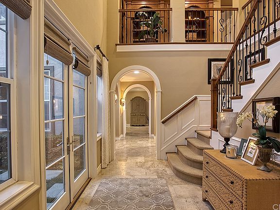 Welcome to 15 River Rock, a magnificent 5 bed 4 bath home with captivating curb appeal. Nestled on a single loaded street within Coto de Caza's Spring Hill neighborhood, this home has an abundance to offer. The entrance is lined with beautiful flower detailing and grand archways. Soaring ceilings greet you upon first step into the home. On your left hand side you will find a luxurious formal living room with fireplace and views of the courtyard. On your right lies an expansive office space with plenty of closet storage. As you venture down the hall you will find French doors that lead you to a wonderful side courtyard with fountain. The large dining room sits beneath a chandelier and has direct access to the kitchen through butler's pantry. Gourmet kitchen features stainless steel appliances, double oven, center island with 6 burner gas range cooktop and counter seating, wine fridge, and ample cabinetry space for storage. The kitchen opens to the family room with a built-in entertainment center and views of the backyard. A guest bedroom and laundry room complete the lower level. Upstairs master suite is the perfect getaway, complete with a bonus room/retreat and breathtaking view. Spa-like master bath includes a soaking tub, separate his & hers sinks, vanity area, and two walk in closets. There are three additional secondary bedrooms upstairs, one with en suite bath. Enjoy the entertainer's dream backyard with pool & spa, BBQ, fireplace, sport court, & covered seating area!