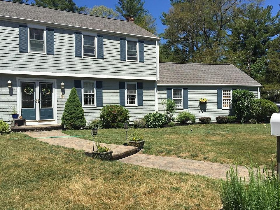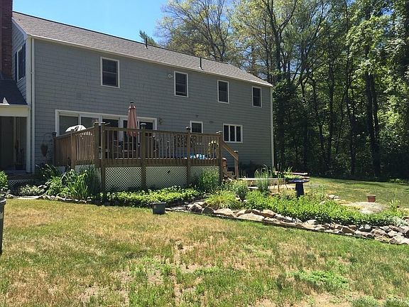 Perfect for Large Family! Colonial style home set on a cul-de-sac with lots of land & living space. 2,468 sq. ft of living space set on a .67 acre lot with extra .65 ac lot. Great yard with fish pond, land enough for a swimming pool, swing set & play area. Relax in your private wooded back yard and listen to the babbling brook, chirping birds or sit on the back deck or in the fam room and watch the wild turkeys & deer through 14' of sliders. Enjoy a warm fire on wintery nights. House has 6 bedrooms with 2.5 baths. Lg eat in kitchen, dining room, living room and family room. Great for entertaining or a big family. Master has 2 closets w/attached bath, walk in closet in upstairs hall. State of the art Buderus 3 zone heating/AC, FHA by oil. New 2016 indirect water heater. Full basement divided for work area and recreation area with separate laundry room. Two+ car garage with plenty of parking, circular driveway. Close to Rte 24, walking distance to Stonehill College. Smoke free home