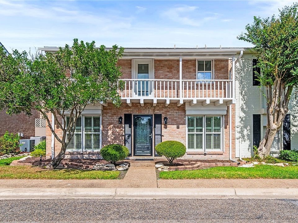 Gorgeous updated 3-bedroom, 3-bath townhome ideally located near TAMUCC, NASCC, and SPID. The stunning kitchen features granite countertops, soft-close cabinetry, pull-out pantry shelves, and an island with extra storage. Bright and spacious living area boasts soaring ceilings, a cozy fireplace, and abundant natural light. Home includes updated windows and doors, two primary suites (one downstairs), and a large third bedroom—two balconies for great views of ponds and sunsets. Enjoy outdoor living on the private patio, perfect for entertaining. The 2-car garage offers a workshop area and sink for added convenience. Nice sized dog park.