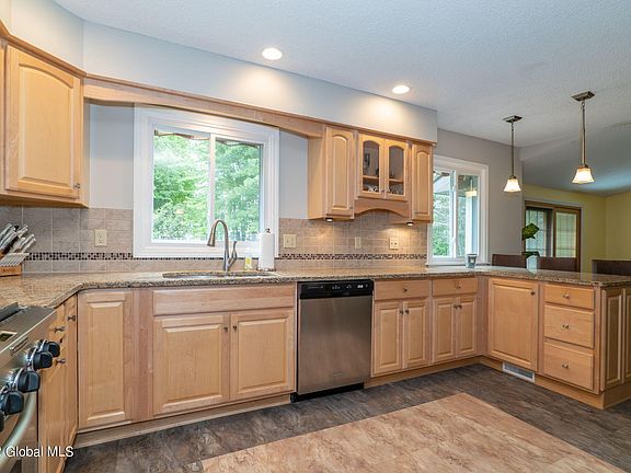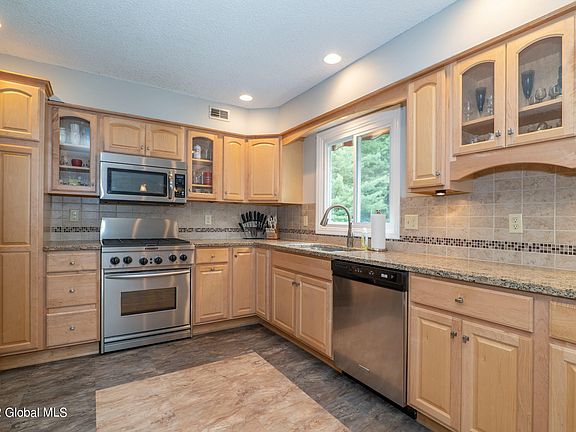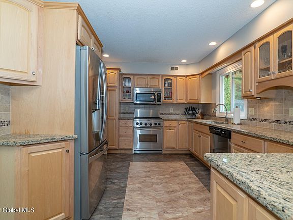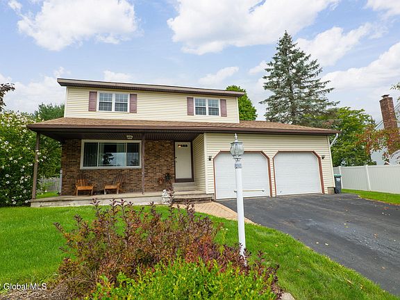 This ideal colonial sits in a quiet walkable neighborhood serviced by the South Colonie SD. The kitchen is great for entertaining and is open to the family room. It has been modernized with granite, custom slow close maple cabinets, tile back splash, SS appliances, a gas stove and recess lighting. The FR offers cathedral ceilings, a stone floor to ceiling gas FP and newer laminate flooring. Spacious DR and living room. Convenient 1st floor powder bath and laundry. The upstairs offers 3 generously sized Bedrooms (one being the primary with updated ensuite and radiant heat) as well as an updated full bath. Enjoy the level, fenced in back yard from the composite deck or patio with awning. AG pool. Central Air. Approximate ages - Roof (10), WIndows (7), Furnace (10).