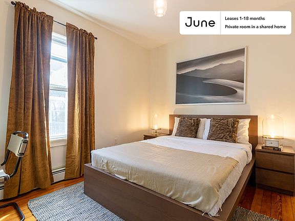This Queen room in JFK/UMass is available on a 12 month lease or a flexible short term (31 to 364 days) lease. You pick your custom start and end date. Monthly rent rate is determined by furnishing preference, move-in date and move-out date. Speak to a June representative for recommendations on the best stay duration for the lowest rate.
