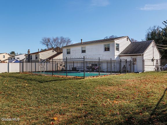 Welcome to this wonderful 3 bed/ 1 Bath home located in the desirable Guilderland School District. As you pull into the driveway you will see the beautiful park across street. Step inside and notice the vaulted ceilings, hardwood floors and open floor plan connecting the Living room with the dining area and kitchen. Upstairs there are 3 large bedrooms and a full bath. There is a finished basement area great for a home office or additional living area as needed. Step into the back yard and enjoy some time around the in-ground pool. Fenced in back yard, laundry room and 1+ car garage. Minutes from both Downtown Schenectady and Albany, close to local highways and 2 hours from New York City