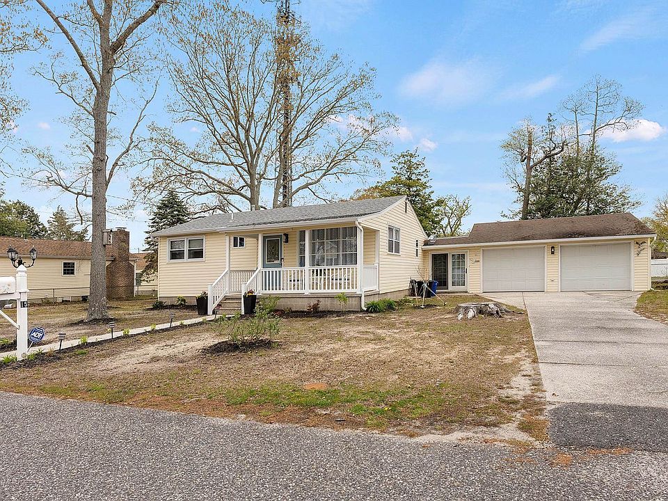 Stylishly finished and tastefully done, this three bedroom, two bath home is being sold furnished and turnkey! The lot is huge (125 x 93) and has plenty of room for a pool! Rose Lane is a quiet dead-end street lined with beautiful trees and only a little over three blocks to the beaches and sunsets of the Delaware Bay. This section of Villas is very pretty with lots of nature, wider streets, and charming homes. No direct access to Bayshore Road allows for privacy and peace. Enter the home from a covered porch with white vinyl rails into a light filled living room finished with hardwood flooring, decorator ship lap accent wall and attractive furniture. To your left are three nice sized bedrooms with hardwood flooring and a brand-new beautifully done tile bathroom. The living room is open to the kitchen which has brand new appliances, on trend subway tile backsplash, sleek countertops, and attractive gray toned laminate flooring. There is a smart breakfast bar overlooking the huge family room and a laundry room off the kitchen. A few steps down off the kitchen and you are in a sparkling very large family room with dining area done with a weathered wood-look laminate flooring and coastal finishes. A second full and brand-new gorgeous bathroom is also on this level. French Doors lead to the front yard or a back door to a big deck for sunning and lazing about. There is stoned area with a fire pit great for roasting marshmallows. Don’t miss the huge attached 2-car garage with electricity. Extras include: New HVAC 2021, New House Roof 2021, New Hot water heater 2021 and all the furnishings are new in 2021. This house has summer rental bookings, but they can be cancelled if the buyer would prefer not to rent. Everything is done for you! Just pack your suitcases and move right in and start enjoying!