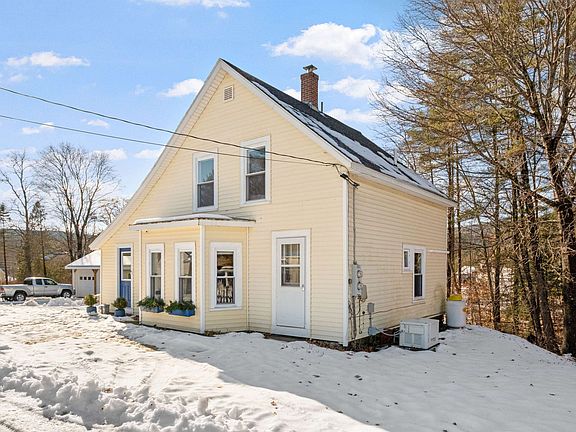 This lovely 3 bedroom New Englander seamlessly blends vintage features with modern updates. The walkway leads to an enclosed three season porch which doubles as a mudroom. As you enter the home you will feel the warmth and an abundance of natural light. A spacious farmhouse kitchen welcomes you with a cozy eat-in dining area, stainless steel appliances, center island with a built-in gas range and a 2nd entrance facing the side yard. There is a back stairway to the 3rd bedroom overlooking the brook. In the center of the house is a formal dining room which opens to a cozy den and living room. The dining room features built-in storage, hardwood floors, and a rustic chandelier centered over the table. The hardwood floors continue through the living room which features a classic four window bump-out making it feel bright and spacious. Enter the hallway to the front entryway and staircase. The 1st floor bathroom boasts a pedestal sink and clawfoot tub. Upstairs, the front bedroom is a sunlit oasis with a walk-in closet. There are two other Bedrooms, a 2nd full Bath and an upstairs laundry. The house has many updates including a standby generator. The detached 2 car garage has an additional room for a workshop or storage. Behind the garage is a storage shed. Great location, within walking distance to the Elementary School, coffee shop, restaurants, library and shopping. Easy commute to NH I-89 and Route 103.