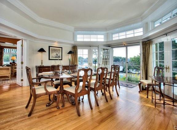 This custom contemporary offers it all ? private beachfront on 1/3 acre, deep water dock, sparkling pool, lush gardens and two terraces in private Rowayton Beach Association. The impeccable home features an open kitchen/great room that has the feel of a high quality yacht interior with custom bookcases, fireplace, large water view windows and high ceilings. A dramatic octagonal dining room easily seats 12 for dinner. His and hers bathrooms provides luxurious living in the master suite with fireplace and vaulted ceilings. The DEEP WATER DOCK will accommodate up to a 50 foot boat. All this, plus splendid sunsets at the mouth of the Five Mile River. TRUE PERFECTION, nothing else like it.