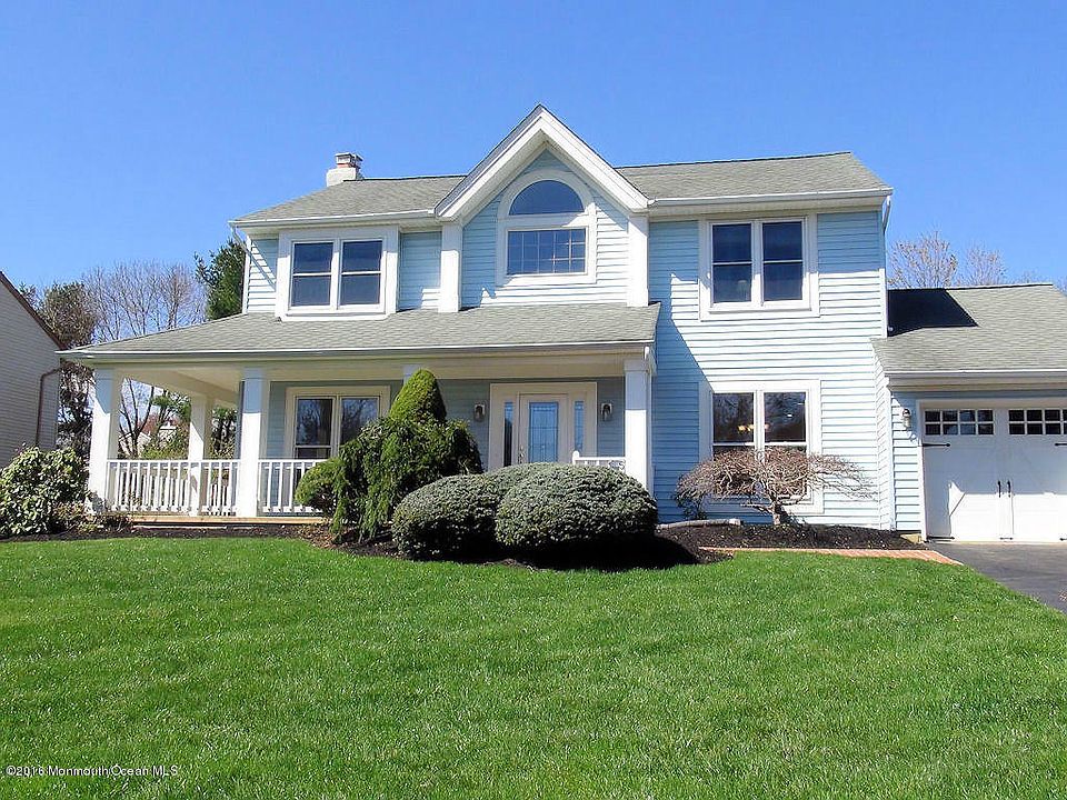 4 bedroom, 2.5 bath Colonial on a lovely quiet street in sought after Crowne Pointe! Shows beautifully with a wrap-around front porch, soaring entryway & brand new carpeting in living room, dining room, family room & master bedroom. The gourmet kitchen features a stainless steel range, hood & refrigerator as well as cherry cabinets. The open concept layout leads to a generous-sized family room, which has a working fireplace with built in log box & French doors out to an amazing backyard: a spectacular multi-level cedar deck overlooks a fully fenced-in yard that is great for families; a beautiful shed in rear yard is included with the home. 2nd full bath is brand new! Entire home & basement has been freshly repainted top to bottom! This one won't be on the market long-bring your buyers!