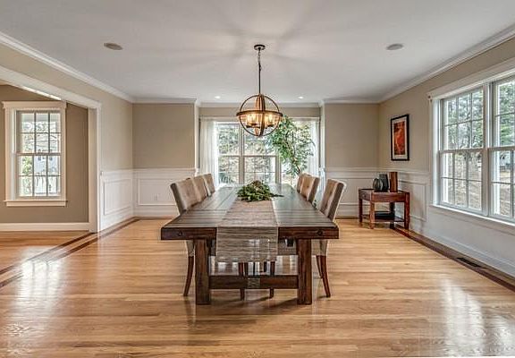 - Din Dscrp: Flooring - Hardwood, Wainscoting, Window(s) - Bay/Bow/Box, Crown Molding