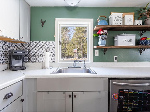 READFIELD - Beautiful Cape home with breezeway and 2 car garage attached, open concept kitchen, dining and living room, primary bedroom with bath on the first floor, living room with wood stove, 2 heat pumps, lots of storage over the garage, large lawn area, great location!