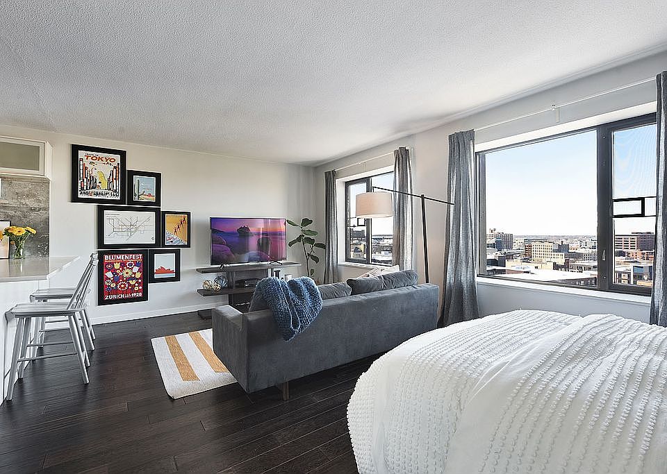 Renovated, stylish, and modern studio on the 16th floor with picturesque views of the Northloop. Unit boasts refreshing natural light from huge windows with some of the best sunset views in MSP. Open floor plan with crisp, clean, and functional kitchen. Great space for those that like to cook and entertain with spacious quartz countertops and stainless steel appliances. Plenty of closet space and included storage unit in the basement. Perfect unit for those looking to live in one of the hottest areas in the cities with short distances to amazing restaurants, nightlife, and nearly anything else you need (groceries, gyms, etc). Walker's paradise! You are just steps from the bike/running/walking paths along the river. Unit is in an established condo building with 24-hour security and onsite management. The Towers also boasts one of the largest greenspaces in the city that is an oasis in an urban environment (see for yourself)!. Other amenities include tennis courts, saunas, pool, grills, ping pong, and more. All utilities, including blazing fast 500mbs fiber internet, electricity, HD cable, water, waste management, etc., are conveniently bundled and the tenant will only have to pay a flat rate of $150 on top of rent (estimated $2-300 at commercial apartments). Surface lot parking is $70 and indoor $110, which tenant would be responsible for if desired. Some furniture could be negotiable if you would like, but not required. No smoking and no pets allowed.