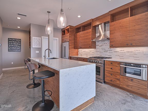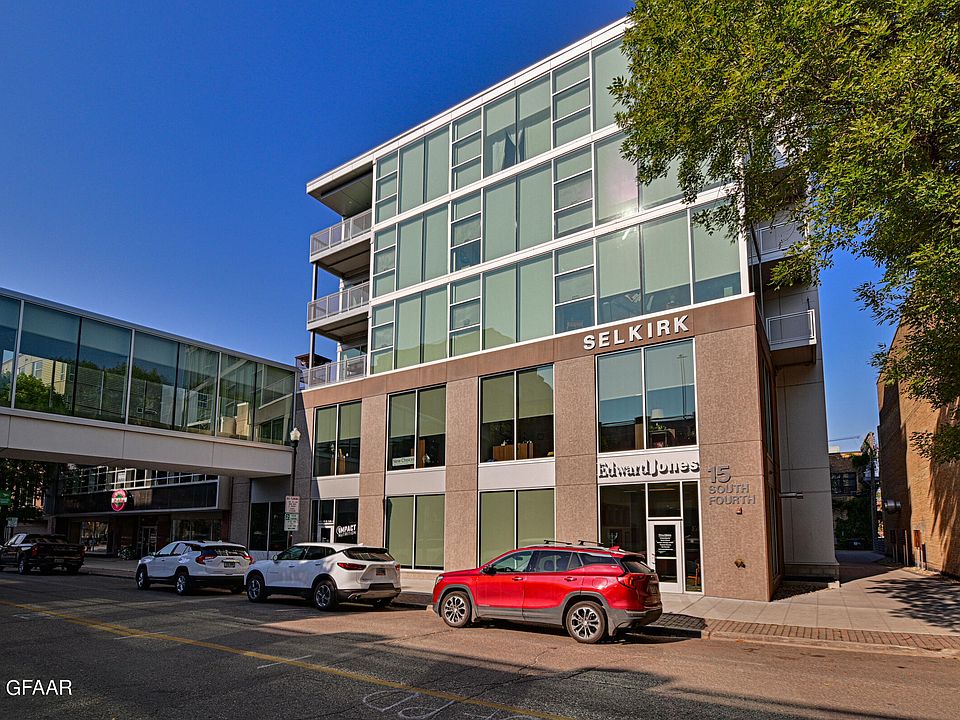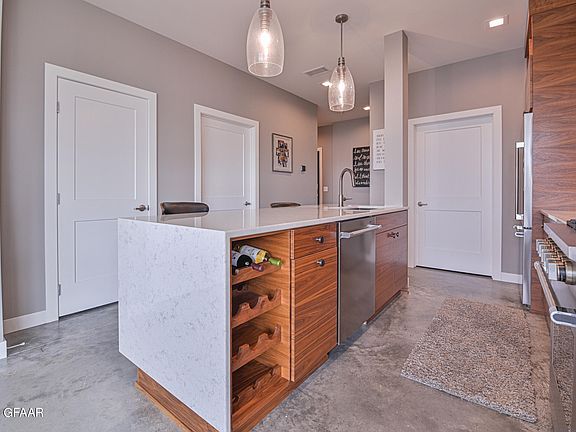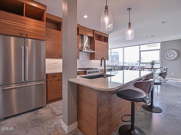 Absolutely stunning Condo in beautiful downtown Grand Forks! Amazing views and natural light as both north and east walls are floor to ceiling windows!Fantastic upgrades, including electric blind system in main living area, as well as primary bedroom, upgraded appliances, quartz, countertops, custom light fixtures, and freshly painted throughout! sellers would consider selling all furnishings,