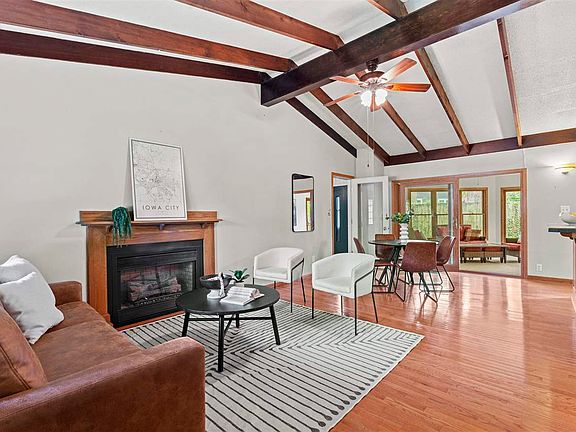 Step back in time to 1954 and discover this charming 3-bedroom, 2-bath ranch home, nestled in an established Iowa City neighborhood that perfectly captures the spirit of mid-century living. This home embraces the iconic mid-century aesthetic with its clean lines, emphasis on natural light, and a seamless flow designed for both everyday living and entertaining. Imagine sunlight pouring through generous windows, illuminating the warm hardwood floors found throughout much of the home. The spacious living areas offer ample room for your vintage furnishings, creating a perfect backdrop for a classic Eames chair or a Noguchi table. A cozy fireplace offers a focal point for cooler Iowa evenings, inviting you to gather and relax. The kitchen, while updated for modern convenience, retains its classic charm, ready for you to whip up a martini or a classic casserole. With 3 comfortable bedrooms and 2 full baths, this home provides ample space for a family, guests, or a dedicated home office. The attached two-car garage offers practicality, a hallmark of mid-century design. Outside, the neighborhood exudes a timeless appeal, with mature trees and a sense of community that harks back to simpler times. This is more than just a house; it's a piece of Iowa City history.
