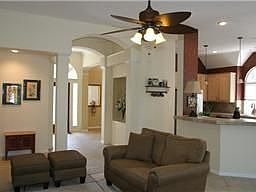 Stunning 1 story home on a private wooded greenbelt lot nestled on a quite cul-de-sac. Huge backyard w/lots of trees & sparkling pool w/fountain. Open split floor plan, tile in main living areas. High ceilings & crown molding. Great island kitchen with tile counter tops/backsplash, stainless steal app. Lg master suite with fire place & separate seating area. Master bath has dbl sink, sep shower, jacuzzi tub, granite counter tops & huge walk in closet w/built ins. Private study w/french doors.