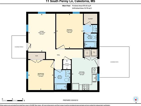 - Total interior livable area: 850 sqft