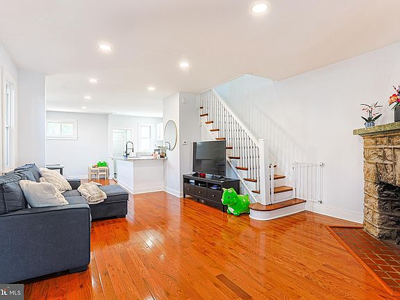 This beautifully home is an incredible opportunity to own a stunning Lansdowne twin for under $230,000! Step through the charming enclosed front porch into a warm and inviting living space, featuring a striking wood-burning fireplace that adds character and coziness. Gleaming hardwood floors extend throughout the living and dining areas, enhancing the home's classic charm. The brand-new kitchen is a true showstopper, boasting sleek porcelain floors, granite countertops, and modern appliances—perfect for any home chef. A convenient walkout leads directly to the backyard, offering easy access to outdoor space. Upstairs, you'll find three generously sized bedrooms and a completely renovated bathroom. The wide hallway makes moving furniture a breeze. The spacious, dry basement is another highlight, complete with a new sump pump, a walkout to the yard, and a utility sink for added functionality and Washer and Dryer Hookups. Additional upgrades include a new refrigerator and range, a modernized electrical panel, a detached garage, and efficient radiator heat to keep costs down. Most of the home's windows have also been replaced, ensuring energy efficiency. Don't miss out on this fantastic opportunity—schedule your showing today and make this house your new home!