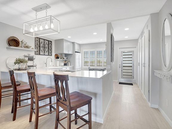 Your piece of the pie!!! An extraordinary get-away. This updated two bedroom two bath condo is a breath of fresh air. Light, bright and airy. Open floor plan with a magical balcony facing east for that great Florida sunrise. New water heater 2023. Major renovation was completed 2023. Shaker cabinets in kitchen, all new kitchen appliances, Quartz counter tops. You will love the new 36x15 tile floors. Primary suite has a large walk-in closet and a roomy dressing area. Custom Plantation shutters throughout. Great storage. One covered parking spot deeded and plenty of guest parking close by. Elevator provided for your convenience. Nice pool area in a park like setting with B-B-Q grill, picnic area ,shuffleboard and cabana club room.