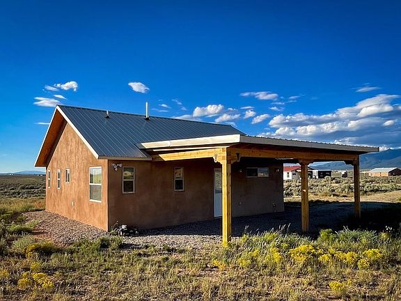 Easy Living - 2BR/1BA 812 sq.ft. territorial style home on 1.3 acres features vaulted ceilings with tongue and groove finish, open living area with lots of windows and a split floorplan. Built in 2020 with modern energy-efficient construction & design. Abundant windows add passive solar heat gain while providing big panoramic mountain, sunset, and sunrise views from inside the home. Large kitchen features great views, lots of cabinetry and modern conveniences. The split floor plan provides privacy and gives you options on use of bedrooms. An office/guest room perhaps? Work from home, stream media, Zoom calls, and more with fiberoptic home connectivity. Covered attached 1-car carport. French doors open to Taos Mountain facing front portal creating an inviting outdoor living area. Located in a small development of residential home sites. Easy access to Taos Ski Valley, outdoor recreation, and Town. With this well-maintained welcoming home, you'll have time to enjoy it all!