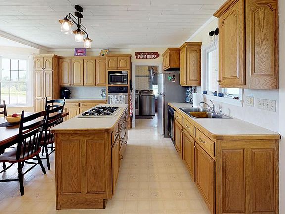 Don't miss your chance to own this very versatile property. 4 bed and 2 full baths with an enormous bank barn another barn a 2 car detached garage a 16x32 extra height metal building and a shed. Many recent upgrades (new water heater and HVAC system in 2016)lower your cost of home ownership. Approx 1.6 acres total with approx .5 acre fenced pasture. The possibilities for this property are endless.