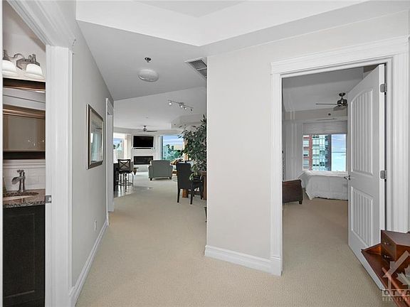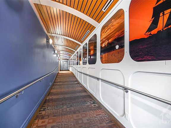 Unshackle thyself from the surly bonds of urbanitis! Come discover the charms of the 1000 Islands and the St Lawrence River from the 7th floor of this 'Cottageinium' (Trademark)! Huge amounts of glazing in this northeast corner suite draw maximum views, and maximum amounts of sunlight and moonlight into your suite. You'll never tire of the ocean-going shipping passing almost in touching distance on the Seaway in front to say nothing of the sparkle of the city to the north after dark. Spacious great room-style living/dining/kitchen area lends itself to effortless entertaining with family and friends. The primary bedroom easily accommodates king size and leads to the nicely appointed ensuite. The 3rd-floor amenities'pool, fitness, veranda, lounges and the 4th floor guest suites available at a preferred rate ($75/night) Condo fees ($876.20/mth, amenities, rec facilities, mgmt, insurance, nat gas for fireplace/bbq, cold/hot water. NOTE: Creative parking options 2023-07-18
