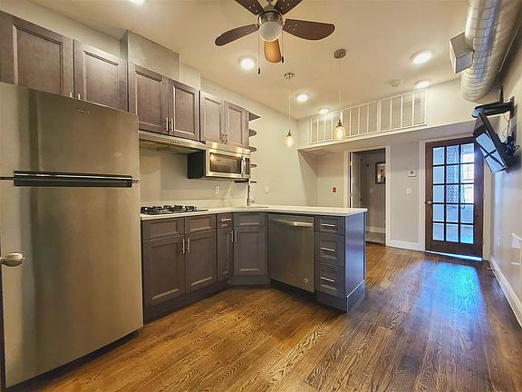 Brand new renovated 2 bed 2 bath unit in boutique condo building ideally located at the center of Jersey City Heights. Provides a painless commute to Manhattan via bus stop a block over or the nearby PATH station. Open floor plan kitchen offers Whirlpool Gold Series stainless appliances, espresso 42" cabinets, dovetail soft close drawers and Carrera quartz counters. All bathrooms finished with Spaniard tile, glass enclosed showers & commercial grade Delta faucets. Both bedrooms & living room complete with ceiling fans. Landlord will install 42'' mounted living room TV, 1 gig Fios WiFi Internet included, espresso hardwood floors, exposed brick & shared backyard! Top of the line Brant HVAC system for optimal heating &cooling. All plumbing & electric is new with washer/dryer in basement. Unit is pre-wired with internet, cable, alarm & intercom. Includes access to shared yard! Sorry, NO PETS. MOVE IN COSTS ARE 1 MONTH BROKER FEE PAID BY TENANT AND 1.5 MONTH SECURITY DEPOSIT.