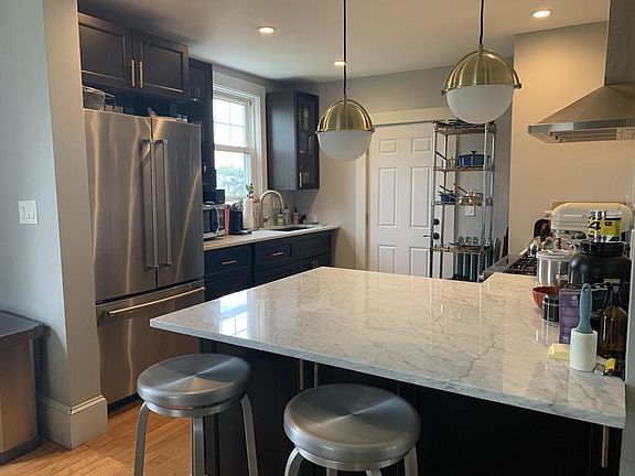 Stunning Jones Hill 2 bedroom with large open layout and private deck featuring expansive city views. Two large bedrooms are separated by a marble and subway tiled bathroom with oversized shower. The living space is separated from the bedrooms by a hallway that includes the laundry closet with stackable washer and dryer. The open floor plan living space offers a large living room, dining room and kitchen. This unit faces east and gets all day sun through the beautiful stained glass. The kitchen features marble countertops, stainless appliances and a large peninsula with overhang for seating. Outside the unit is a shared backyard and a tandem parking spot for two cars. The unit will not include the overhead chandelier and pendant lighting seen in photos.