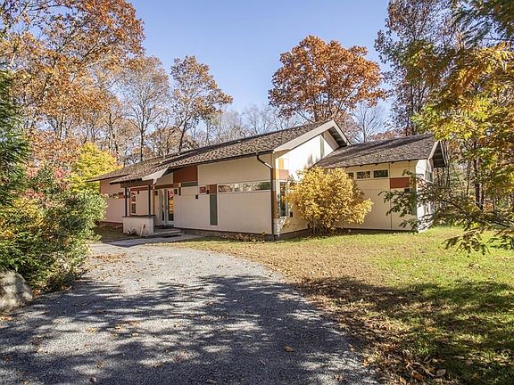 You must see this Incredibly Unique Contemporary Home. Architect Designed Nestled on a Lovely Wooded lot W/ Stone Walls. This Open Floor Plan has a New Hi-Efficiency Heating System. Propane Radiant Heat. Some other Wonderful Features include, Stained Concrete Flooring, Built-in Huntwood Cabinetry,Central A/C, New SS Appliances, Master Bath w/ Soaking Tub & Sep. Large Tiled Shower. There's Also A Wood Stove for added Ambiance & Warmth. This Beautiful home Has lots of Natural light great for viewing the stars & moon. Many Closets, Pulldown Attic for additional storage. Alarmed, Lg Shed, Composite Deck to Hot Tub new in 2016 , Generator Hookup, Decorative Lighting, Viemann HW Tank, The List goes On. Not a Drive-by!!