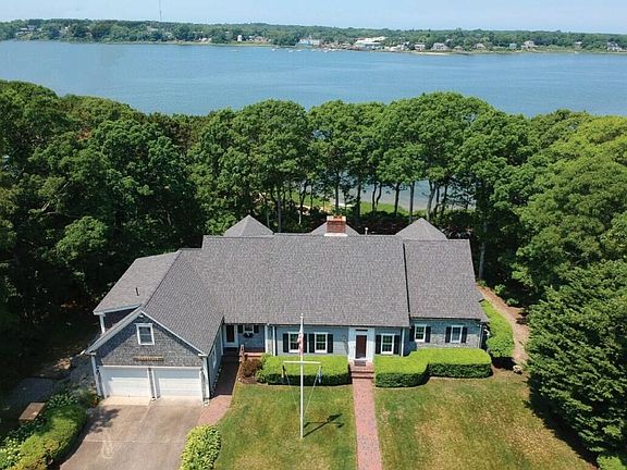 This classic salt-waterfront cape directly overlooking Town Cove enjoys its own private sandy beach and boating access to Nauset Spit and beyond. West-facing on an elevated acre with room for a pool, this architecturally traditional home with a modern floorplan provides a singular blend of spectacular sunset views, casually elegant comfort and privacy. Superb water views from nearly every room, the large waterside lawn and the first and second floor decks that span the entire rear of the house. The main floor encompasses the fireplaced living room, sitting area, updated kitchen, dining space, laundry and the stylish primary bedroom suite with dressing room and luxury bath. Upstairs are a family room and three bedroom suites, all with updated baths. Numerous upgrades to the home's major systems. A recent gas conversion includes the kitchen, HVAC, a new generator and gas grill. The walkout basement is great for transporting kayaks and beach chairs down the gently sloping path to the private, sandy beach. Swim or clam, fish or sunbathe or take the boat from your mooring to the resident's side of Nauset Beach. A generational family home for the consummate Orleans seaside experience.