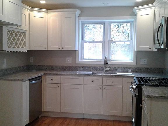 Open House Sunday CANCELLED!!! Price Break! Great care was taken with this beautiful rehabbed home .When you walk in the front door you enter a lovely inside enclosed porch for reading or just watch the world go by. Shining new manufactured hardwood flooring gleam throughout the home. Many windows gives lots of natural light. The space in this home is nicely placed giving everyone their own bedroom. Two beautiful baths with tile and new wood floors. new lighting, sinks etc. The kitchen has white wood cabinets which even has a wine rack., A new stainless steel gas stove and new dishwasher and new flooring. Wait when you see the lay out in this U shape kitchen with gorgeous granite counters. The kitchen opens to a spacious living room/dining area for the family to enjoy. The property also has a large shed with doors on front and back. Could be an artist studio.BACKS UP TO CONSERVATION LAND!