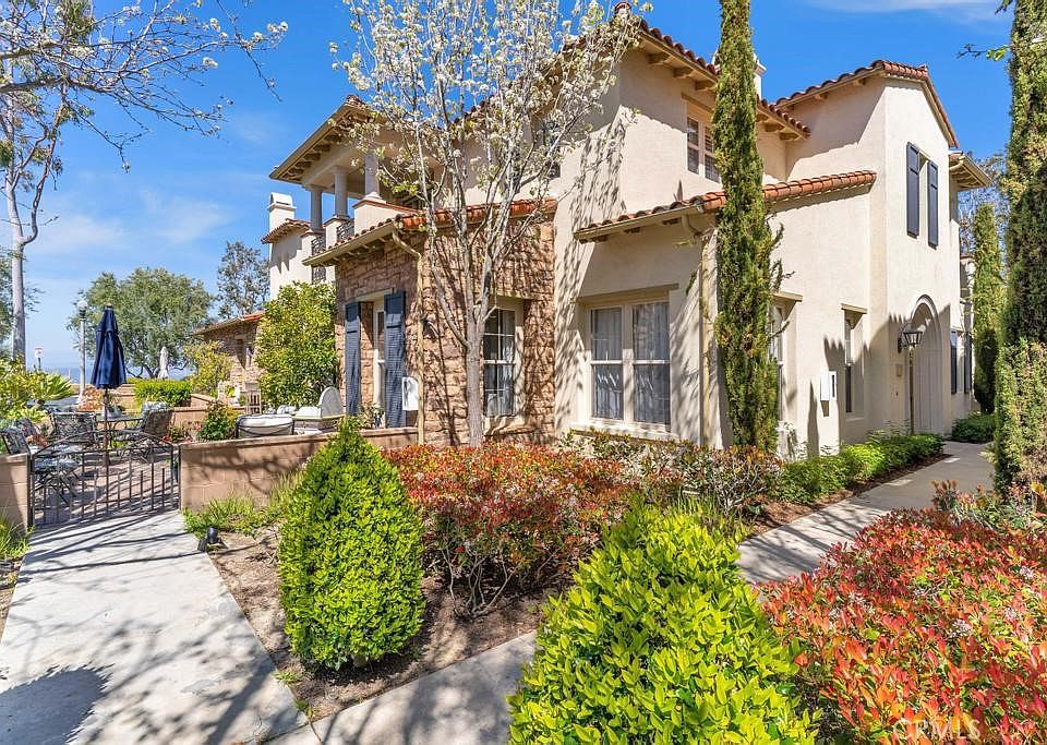 This private Mediterranean villa is located atop the hills of Newport Coast in the tranquil gated community of Ziani. Key features of this home are the abundance of natural light and balconies off both the living room and dining room. The open kitchen showcases stainless steel appliances with a breakfast bar island and large dining area - all open to the living room and its' fireplace. This spacious two bedroom plus den home has two newly remodeled bathrooms. The master suite includes dual walk-in closets and a gorgeous new designer master bathroom with custom cabinetry, dual sinks, quartz countertops, a soaking tub, a separate shower and designer lighting. In addition, you will find the secondary bedroom, a large den, another newly remodeled bathroom and hallway laundry. The attached two-car garage includes built-in cabinetry and a hook-up for charging electric vehicles. Take advantage of top-notch HOA amenities including a clubhouse, luxurious pool and spa. And, very nearby is the upper entrance to the trails of Crystal Cove State Park - which leads to both the ocean and the hill trails of Laguna Coast Wilderness area. Enjoy a five-star resort experience without ever leaving home. Ziani is just a short distance from the allure of Newport Beach's finest lifestyle, dining, and luxury offerings, such as Pelican Hill Resort, Fashion Island, Crystal Cove, South Coast Plaza, and John Wayne Airport.