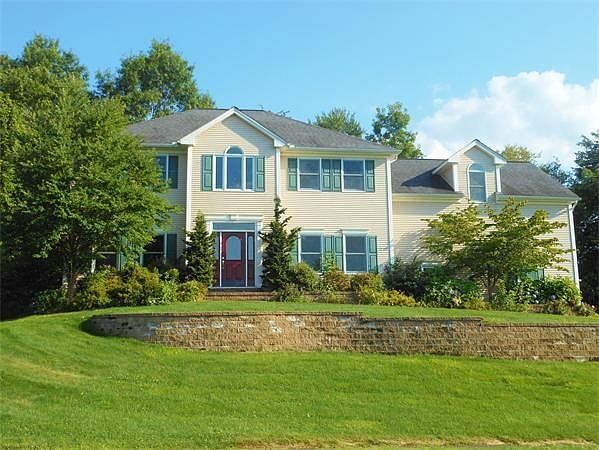 GREAT HOUSE, GREAT VEIWS, GREAT PRICE! Don't like mowing, not much yard-work required here. Conservation land surrounds this home, maximizes privacy. Cont Col custom detail throughout home. An abundance of red birch custom cabinets and granite counter-tops in the kitchen open to the family room with gas fireplace and speaker system. Beautiful maple floors in most rooms on the first level. Gracious formal dining room with custom wainscot & maple flooring with cherry inlay, wonderful views of the mountain range. Soaring foyer with curved walls, granite floor and a magnificent hand crafted spiral staircase, and the crystal chandelier is simply gorgeous. Master bedroom suite, which offers lavish Jacuzzi tub, steam shower, granite flooring, all cherry cabinetry. Stunning panoramic views of the mountains from most windows. Heated garage with access to the basement. Short commute to Baystate Med. Center, Northampton, Hartford, Airports and all major high-ways. Hiking and boating close by.