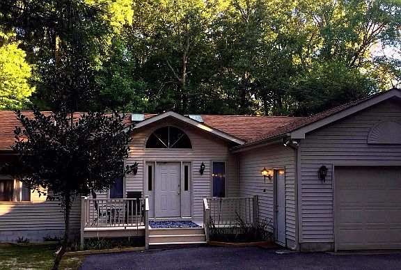 Beautifully renovated, open concept home perfect for year-round or vacation living. New kitchen with new Gallery stainless appliances, backsplash, granite, soft-close cabinets, and Pergo Max flooring overlooks great room with soaring cathedral ceilings. Large master bedroom suite has walk in closet and en suite bath and leads to rear deck. Family room with multiple windows off of kitchen leads to rear screened in porch and outside deck overlooking woods. A full attached garage for cars/water toys complete this home. Must See!