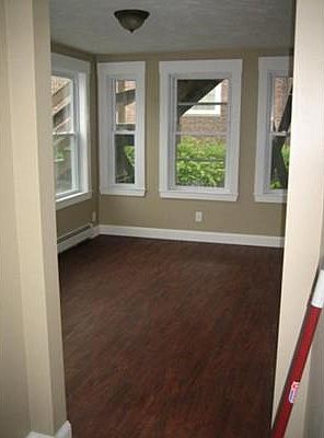 Large 5 room 2 bedroom apartment on first floor of owner occupied house. Laminate floors through out. Kitchen has granite counters, small dishwasher, electric stove and refrigerator. 1.5 baths in the property as well as in-unit laundry. Laundry room could also be used as an office. 2 car off street parking. Wall a/c unit. Heat included in the rent. Tenant pays gas hot water, electric, phone/cable/internet. First and security. Landlord takes care of lawn and snow removal. Pets negotiable (no dangerous breed dogs). Great commuter location -- near Route 126, 135, & 9. Easy access to downtown and commuter rail.