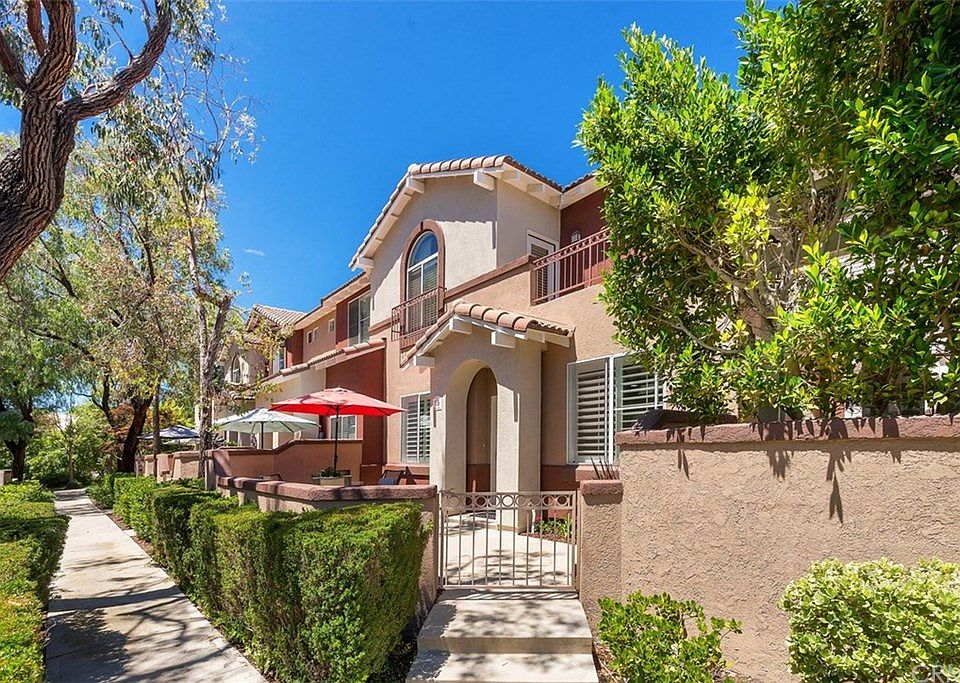 Situated in the Vineyards community, this beautiful two-bedroom + loft, 2.5 bath townhome is conveniently located near restaurants, shopping, parks and a movie theater. Entry is through a gated, private patio where the front door opens to a spacious living room with adjacent dining area and a recently renovated kitchen. The kitchen features recessed lighting, quartz countertops, upgraded cabinets and self-closing drawers. The open-concept layout is perfect for entertaining or just spending time with the family. Upstairs has a loft with access to a private balcony and laundry nook, bathroom, and two bedrooms. The master bedroom has a second private balcony and a highly upgraded master bathroom with large walk-in shower, gorgeous double sink vanity and quartz countertop. Wood shutters throughout the first floor. Attached two-car garage. This home is conveniently located within the community and has easy access to parking and playground. Vineyard community features a pool and Jacuzzi as well as a tot-lot. Located near the 241 toll road and Whiting Ranch hiking and biking trails. Highly rated school district. No Mello-Roos.