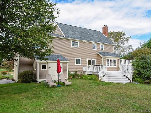 Price adjustment!.. for this picture perfect sunny colonial on a level landscaped lot with remodeled kitchen & baths. First floor has all hardwood floors & open living between the family room, eating area & kitchen. Creamy white cabinetry in the remodeled kitchen sets off the granite countertops & stainless appliances to perfection. Office/sitting room has flexible use & opens to family room with french doors. The formal dining room is off the kitchen - which also opens to the deck via sliders. The meadow-like backyard is bordered by trees and a stonewall and brings to mind future outdoor activities galore while family & friends watch on the oversized 24X20 deck. The rare luxury of a full bathroom for each of the 3 bedrooms! Two en-suite bedrooms including a large master with two closets, one a large walkin. The master bath has granite double sinks and a full shower. The finished basement area provides opportunity for expanded living & recreation. Freshly painted, this home is move-in ready! Popular Saw Mill Road with it's great location and sweeping lawns has just been re-paved and is even more beautiful!