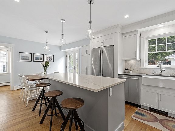 Welcome to this charming side-entrance Colonial situated on the desirable East Side of Melrose. This beautifully stewarded home offers modern conveniences while retaining its classic appeal. The renovated kitchen, complete with gorgeous oversized island, is hub central, perfectly planned with built-in microwave drawer, storage and seating galore! Primary bedroom is a delight with a walk in closet and en-suite bath. Two additional bedrooms and large main bath finish off the second level, while the walk up attic offers storage or expansion potential. Finished lower level, central air and two car garage knock this beauty out of the park! Enjoy outdoor activities in the large, flat rear yard, ideal for gardening or relaxation. Conveniently close to parks, the country club, major routes and vibrant downtown Melrose, this home offers both comfort and convenience in a prime location.