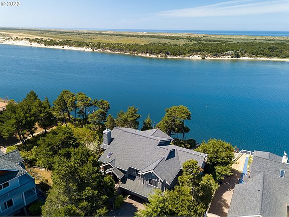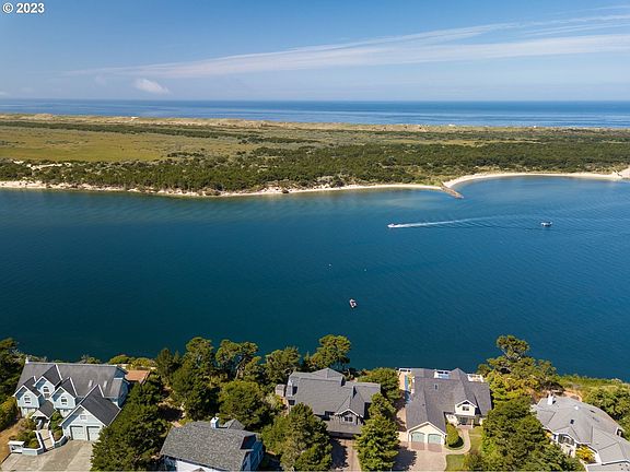 Panoramic Siuslaw River, ocean and jetty views along with spectacular sunsets await you in this beautiful custom fully furnished 3 bedroom, 3.5 bath great room with wall of windows and sliders to enjoy the outdoors. Vaulted knotty pine ceilings, granite counters, Viking professional stainless appliances. Master suite on main level, large walk-in shower, jetted tub, granite. Guest en-suites on lower level, one with mini bar. Bonus room, lots of storage, finished double garage. 2023-10-12