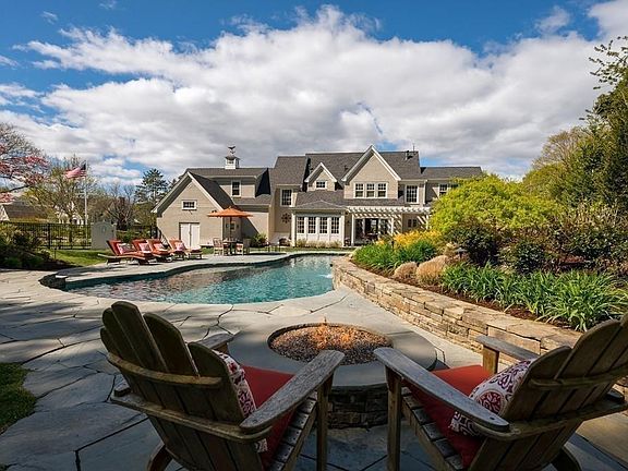 Distinctive custom built World's End shingle style home with water views. High quality, high products throughout this architectural stunner.Richly inspired open concept first floor with Faneuil Kitchen, including 2019 appliances, fireplaced living room with built-ins, dining room with dual temp wine refrigerator, climate controlled 500 bottle wine storage room, screened sunroom with gas stove, sought after first floor master with fireplace, walk-in closets, new luxurious bath, heated floor, steam shower, and soaking tub. Second floor comprised of three large bedrooms, two full baths, bonus family room and spacious cherry paneled office with fireplace. All this plus 2016 55' pebble tech shaped salt water pool with waterfall, gas firepit, pool house with kitchen and half bath, outside shower, Hayward aqua connect system for pool mechanics and lighting. Absolutely beautiful, lush landscaping! Deeded beach rights across the street with the ability to moor a boat in Seal Cove.
