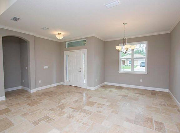 • Interior Features: Garage Door Opener, Kitchen Island, Solid Surface Counters, Walk In Closet, Security System, Split Plan, Volume Ceiling, 1st Floor Bedroom