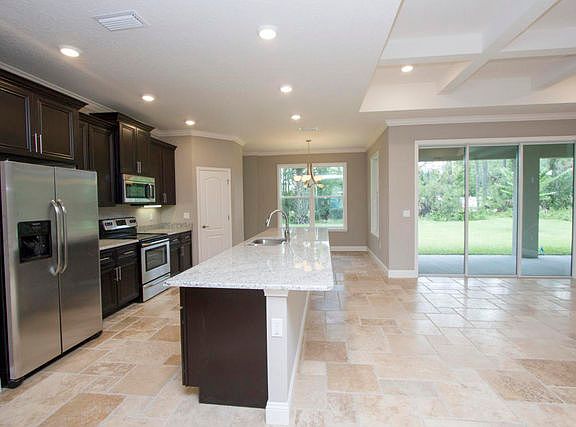 Everlast Homes presents the Magnolia This 3/2/2 offers an open floor plan great for entertaining with a 12 foot kitchen island open to family room, 3 bedrooms, 2 full baths, breakfast nook, dinning room. Coffered ceilings, travertine floors in the living areas and wood laminate in the bedrooms. Solid wood cabinetry with soft close drawers & doors, granite counter tops in kitchen & baths. Full stainless steel appliance package including refrigerator, inside laundry with utility sink, alarm system & irrigation system w/ St. Augustine grass.