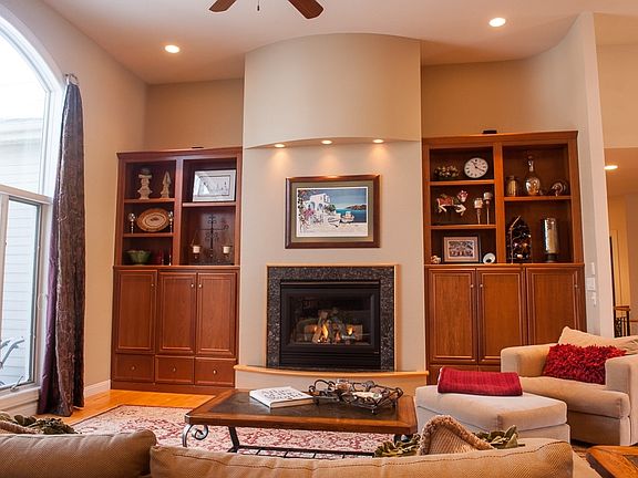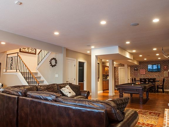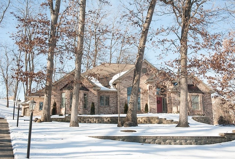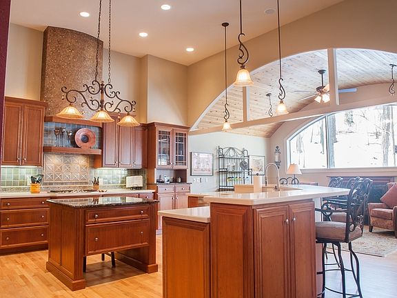 Stunning Ranch on .78 acre wooded cul-de-sac lot! Vaulted ceilings, hardwood floors, gourmet kitchen with island, walk-in pantry, hearth room, 3 fireplaces, formal dining, butler pantry, den, master suite with two walk-ins, jetted tub, separate shower, central vac, sound system. Lower level remodeled with additional 937 square feet, handscraped wood floors, wet bar, two-sided brick fireplace & 2 large bedrooms each with bath! Exercise room, workshop, lots of storage.